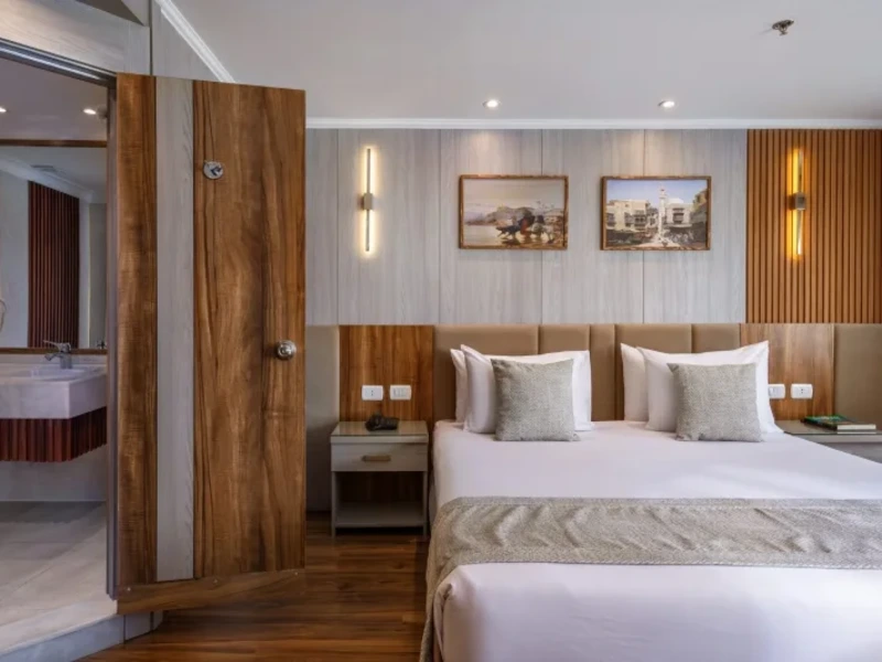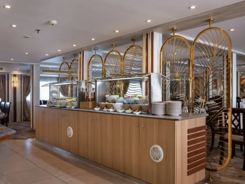 Dopo giornate ricche di esplorazioni, rilassati a bordo in cabine spaziose, goditi la piscina con vista sul Nilo e deliziosi pasti che combinano sapori internazionali e locali.