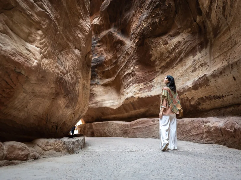 - Percorriamo il Siq, il suggestivo canyon che conduce alla meravigliosa facciata del Tesoro, simbolo di Petra.